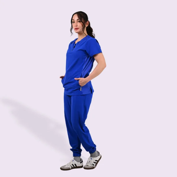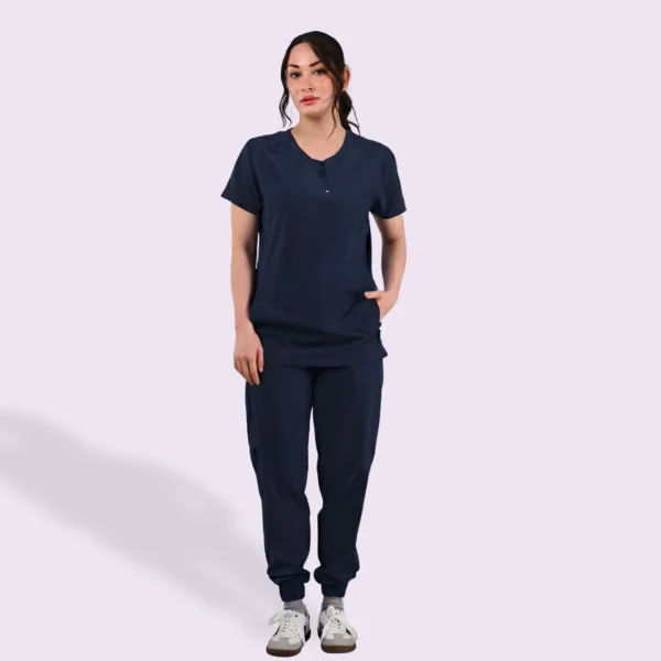 Meet Comodo: the fabric that moves with you and keeps its shape. With 4-way stretch, this scrub resists wrinkles, fading, and wicks moisture to keep you cool. Caring for it is effortless—just toss it in the washer and dryer, and enjoy its lint, fur, and hair-resistant finish for a polished look.