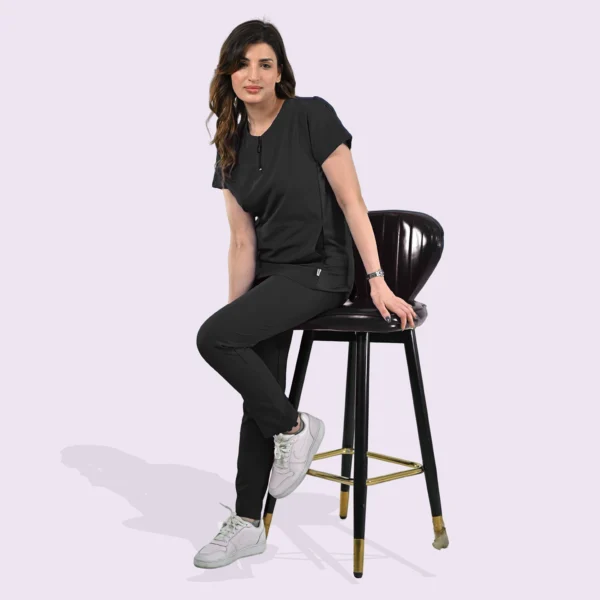 Tailored for the modern healthcare professional, this women’s scrub top offers the perfect blend of form and function. Whether worn tucked or untucked, it’s a flattering athletic fit that complements your silhouette, while seam-sealed chest pockets ensure flexibility without adding bulk. Designed to push boundaries, this top is the future of healthcare fashion, combining innovation, style, and comfort. Embrace the future with confidence. Elevate your day, elevate your look. Always moving forward.